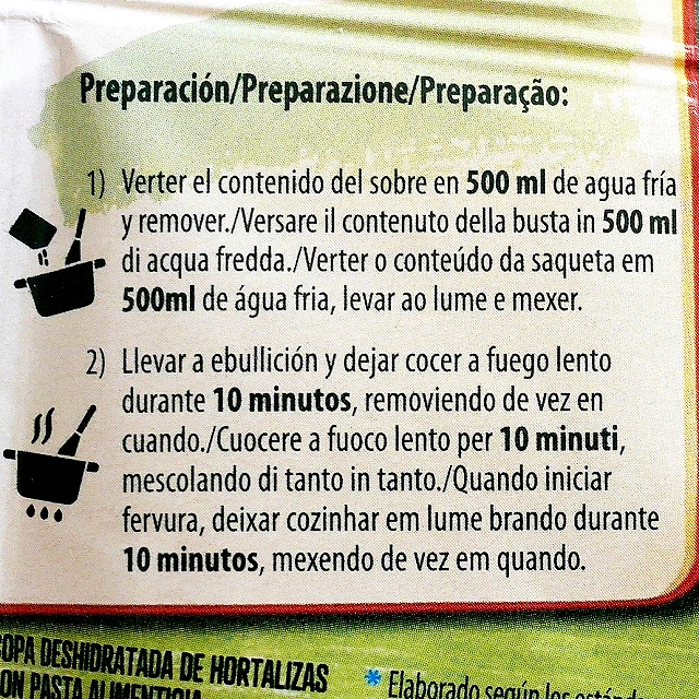 1リットルの熱湯に1袋入れてから、かき混ぜながら沸騰させ、時々かき混ぜながら弱火で5分煮る。